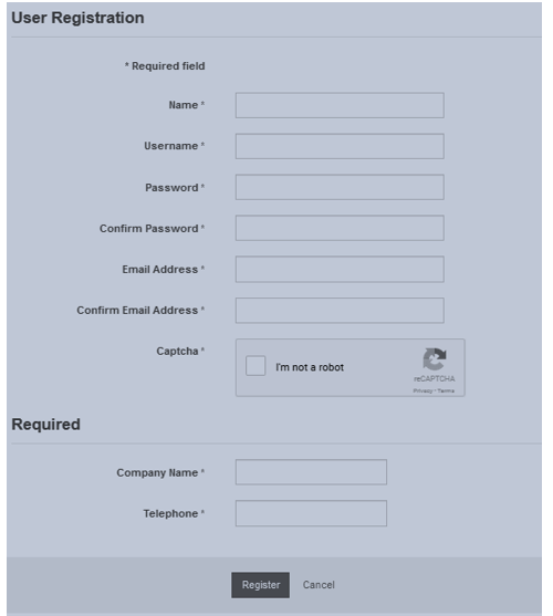 It is very important that you fill out all fields accurately and completely including the Company Name and Telephone number fields. This information is kept confidential but can be useful if one of our website administrators needs to contact you to assist with your use of the web site. It is also an important way for the administrators to verify that you are the person you claim when you request access to your documents.